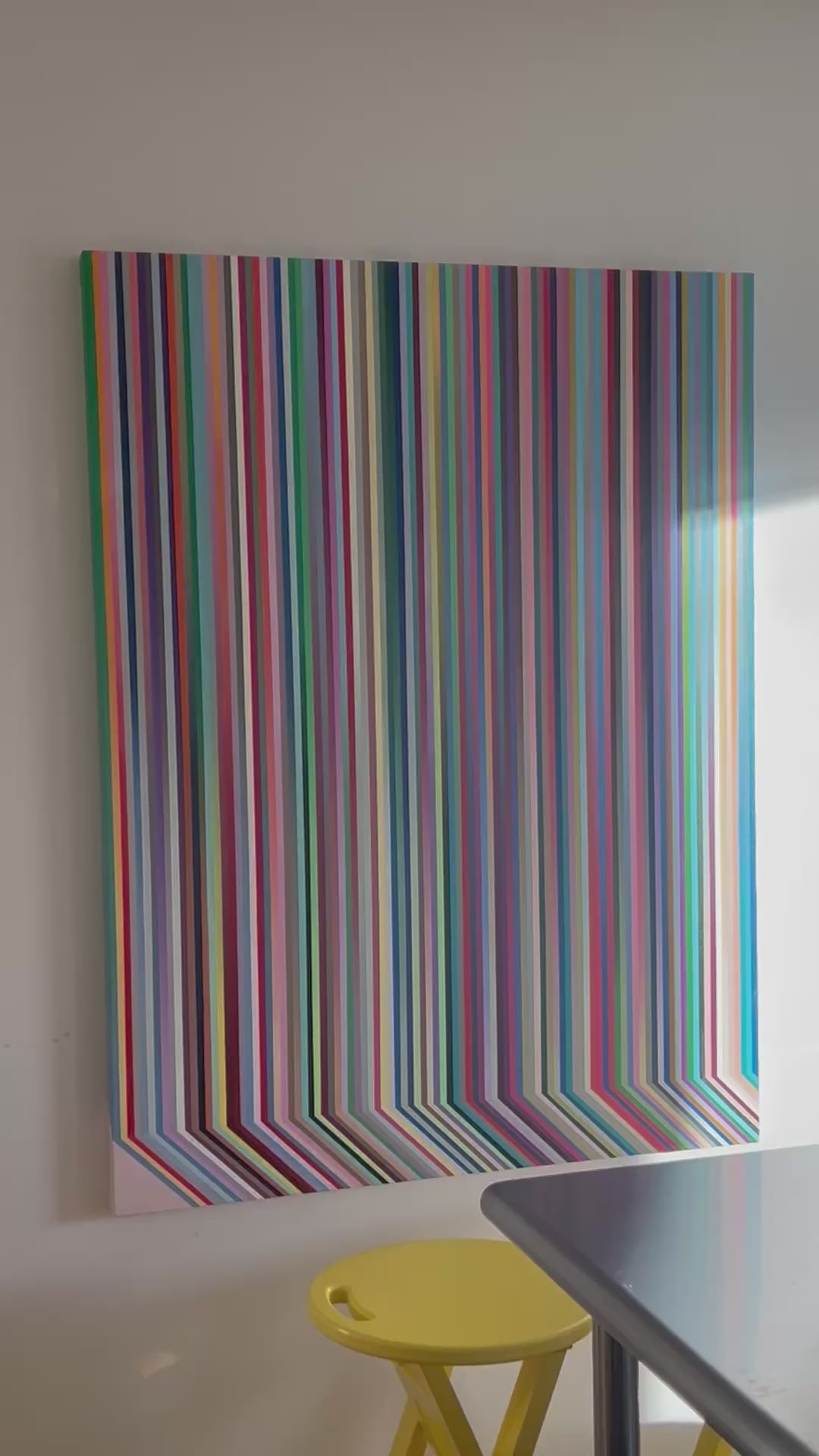 Look close enough and long enough, and change reveals itself. This painting encodes all 100 gradients from my 2025 100 day project, the first time I ever finished the challenge started by Yale design professor Michael Bierut in 2006. The process itself involved painstaking colour matching for 200 colours, painted into thin vertical stripes. Painting this, getting lost in the vigorous strokes of blending, continuing despite the lack of visible progress, it became a record of perseverance. A pivot point in my creative practice, the summer I changed my relationship to art and time. Is this what they call trusting the process?